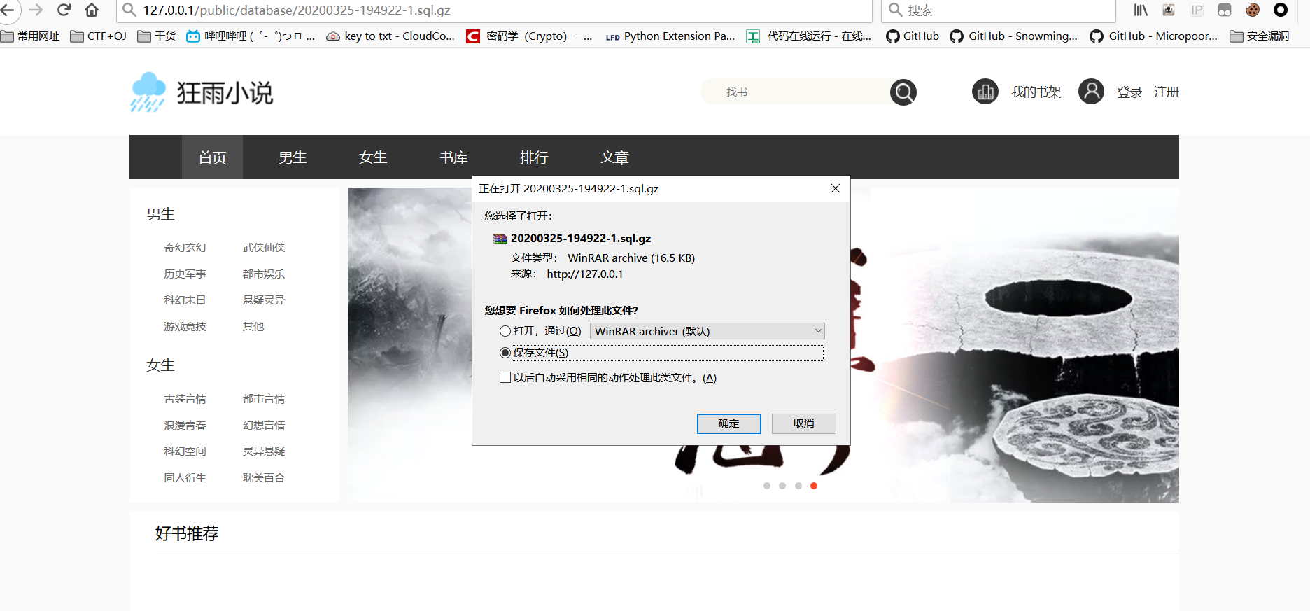 后台可以直接备份数据库,备份后为.sql.gz文件(可以在设置里更改是否压缩),文件名为time函数生成的时间戳,可直接爆破进行下载,这里先附上exp