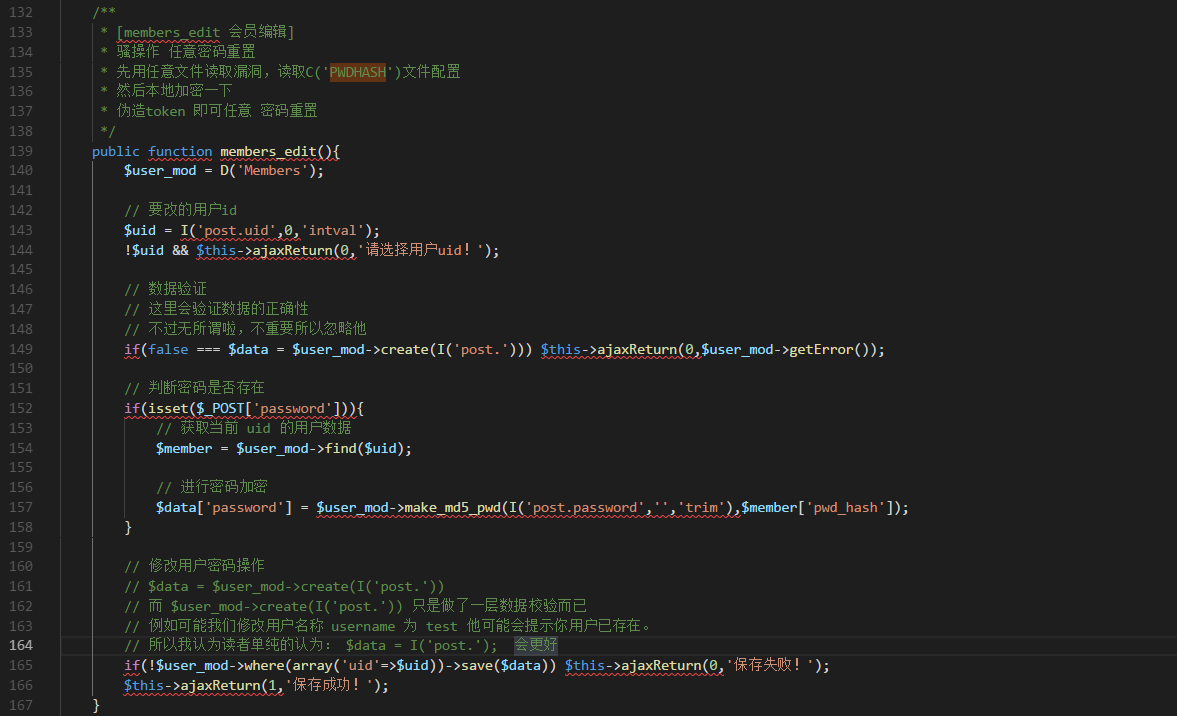 想要利用此漏洞,我的想法是先通过,任意读取漏洞,先把C(‘PWDHASH’) 的值读取出来,然后在加密验证一下即可