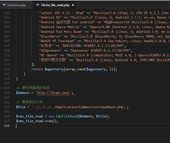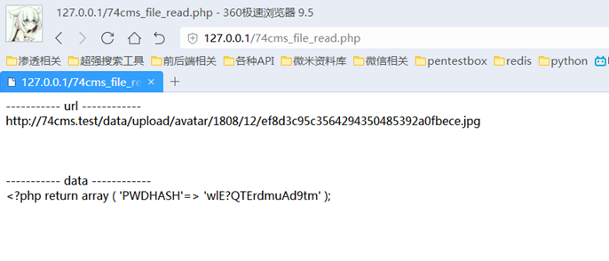 然后在通过 “任意文件读取漏洞” 读取目标站点的C(‘PWDHASH’) 的值,接着本地加密成token