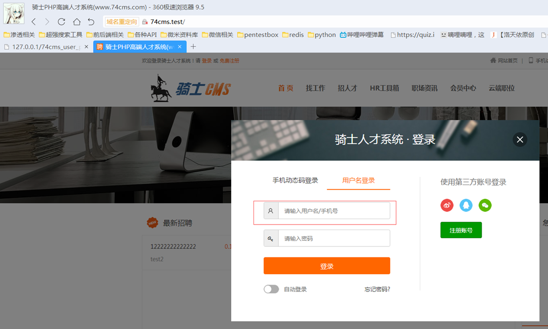 # 74cms v4.2.126-因任意文件读取漏洞导致的任意用户密码修改漏洞