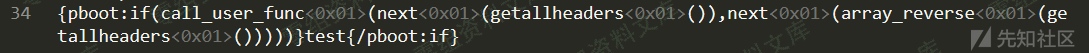 在这里其实做的过滤并不全面,我们可以扩展思路,结合一些其他函数,例如call_user_func函数来进行利用,同时可以参考PHP无参数RCE的考点,将可控输入点转移到请求包的header头中,直接绕过cms中存在的一些过滤项,上面的利用方式中,使用了getallheaders()同时配合一些数组操作函数来达到执行任意代码的目的