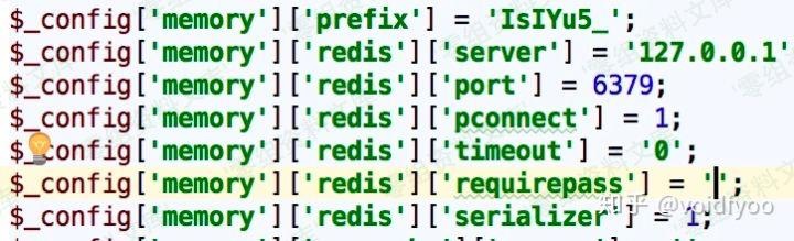 SSRF 攻击 Redis 步骤实际上就比攻击 Memcache 简单了,因为 Redis 支持 lua 脚本,可以直接用 lua 脚本获取缓存键名而无需再去猜解前缀。当然能成功攻击的前提是 Redis 没有配置密码认证,Discuz requirepass 那一项为空: