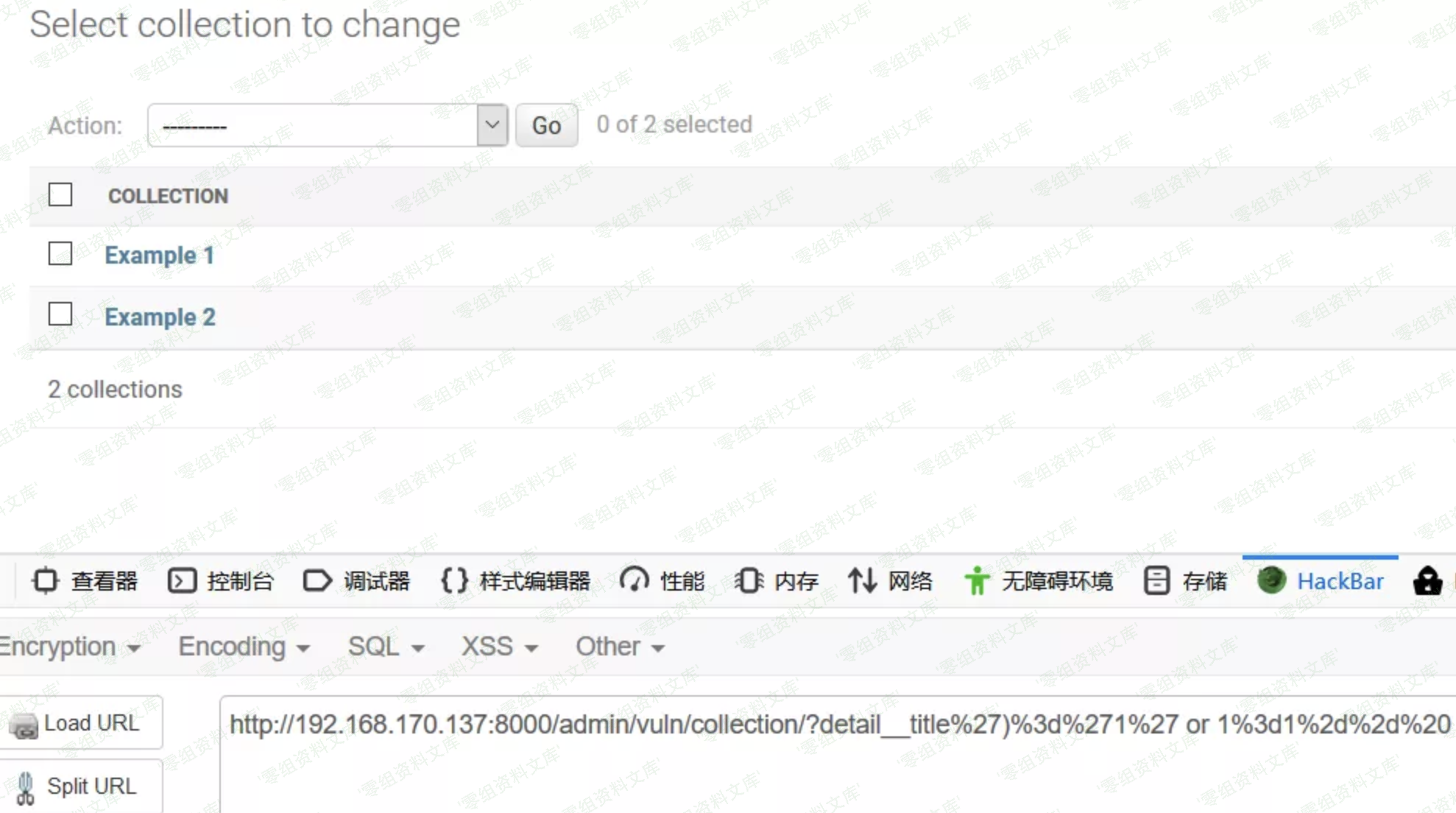 http://ip:8000/admin/vuln/collection/?detail__title’)=’1′ or 1=1–