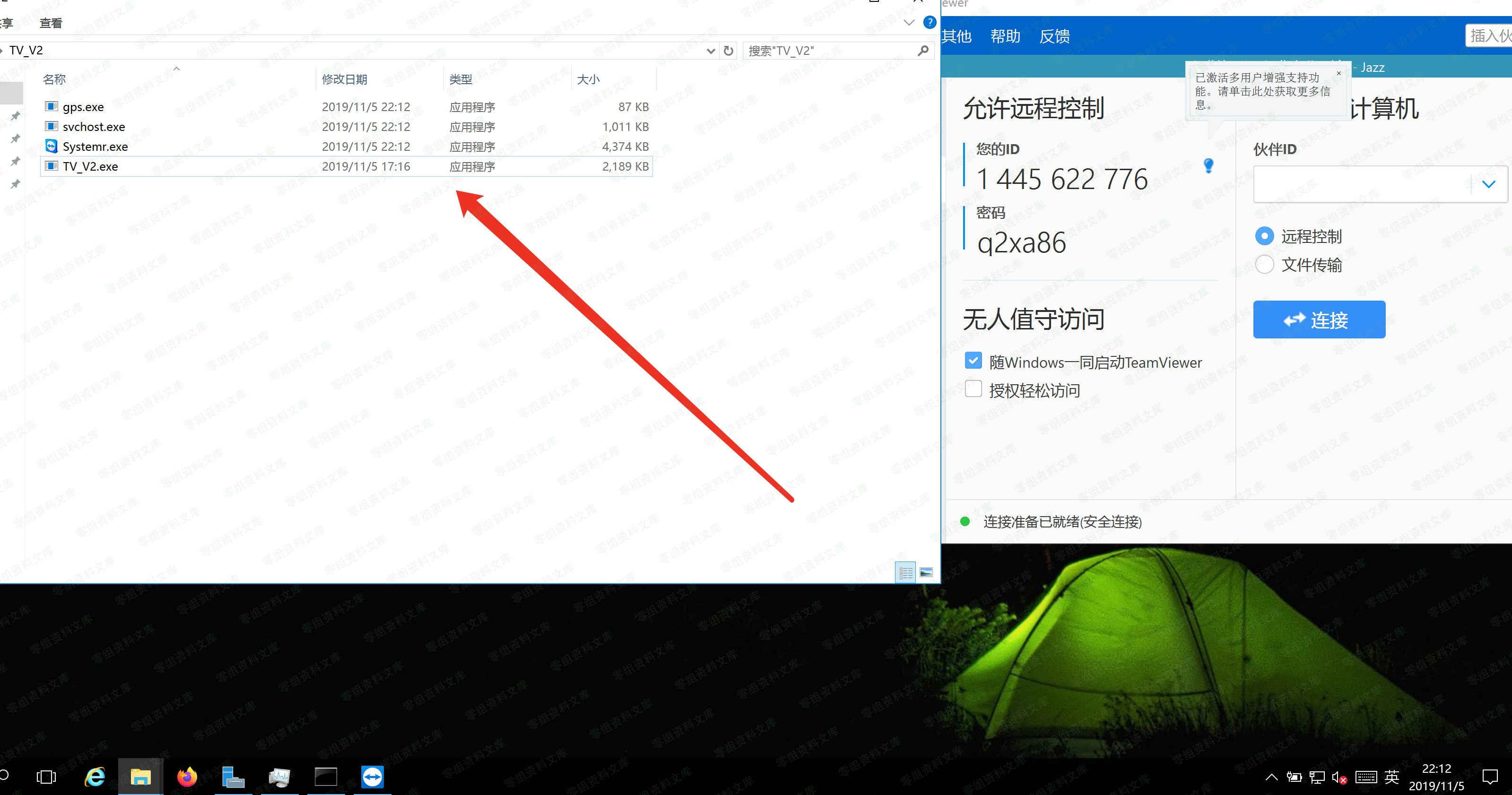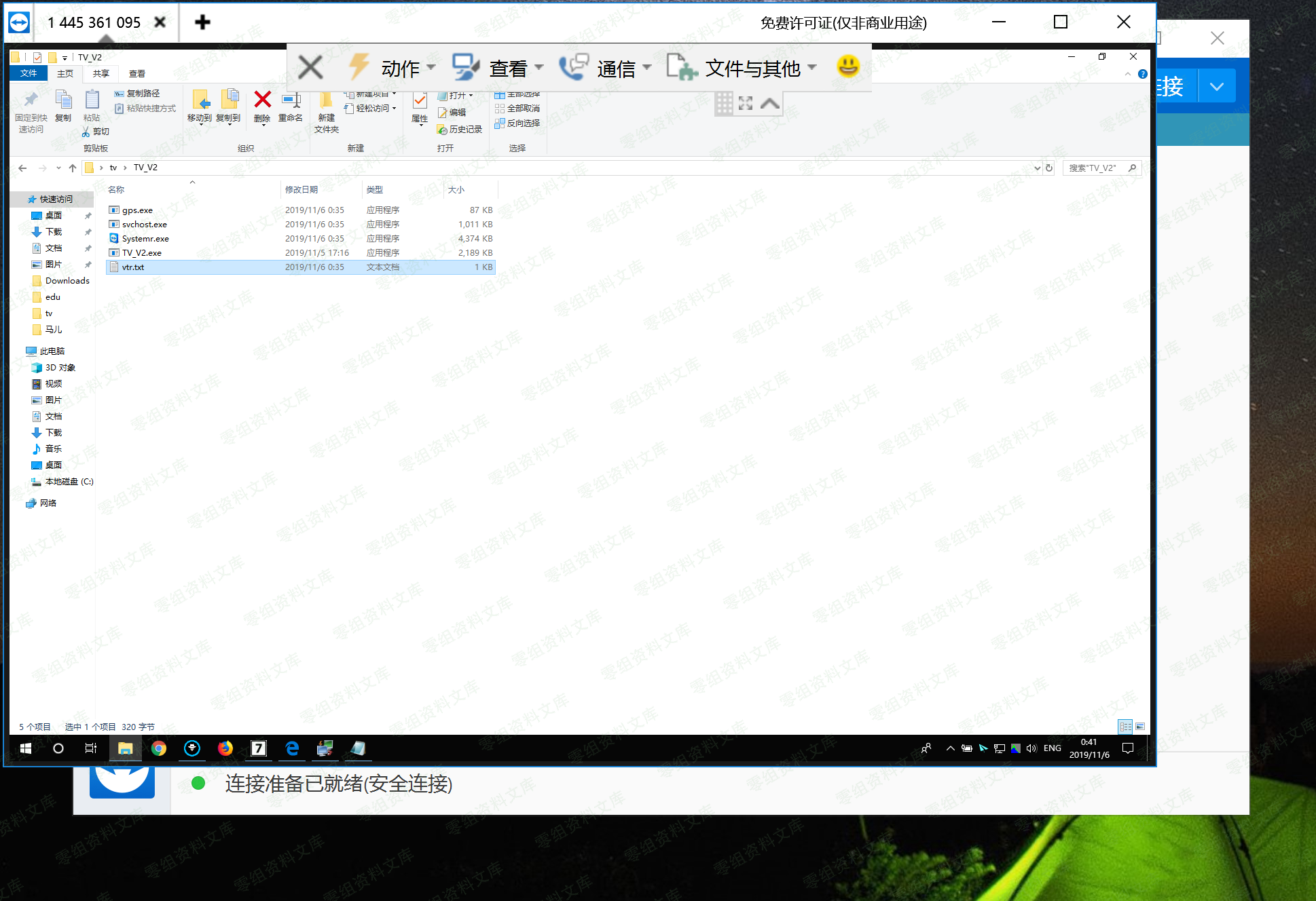 这里利用的原理是强行给对方机子安装上teamviwer,然后自动把tv的远程连接的密码生成到程序目录下的vtr.txt里面中,随即用自己本机的tv连接就行了