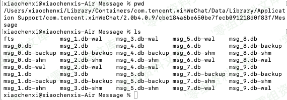 ~/Library/Containers/com.tencent.xinWeChat/Data/Library/Application\ Support/com.tencent.xinWeChat/*/*/Message/*.db