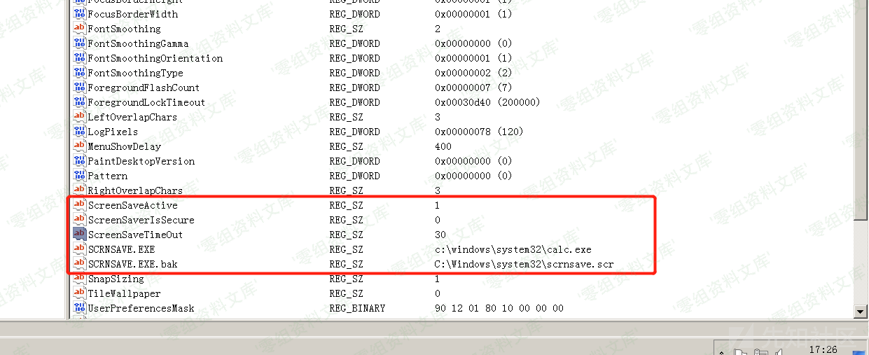 1. `SCRNSAVE.EXE` – 默认屏幕保护程序,我们可以把这个键值改为我们的恶意程序