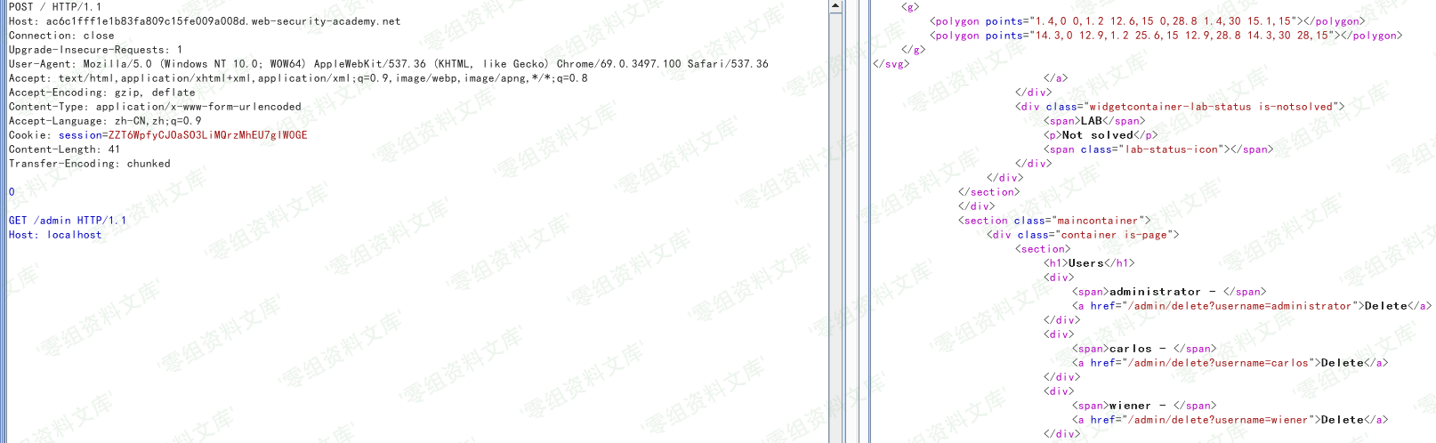 要完成本实验,需向后端服务器走私一个http请求以访问到管理员系统并删除名为`carlos`的用户。
