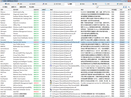 找到进程ID为1464的服务项,逐一排查,我们发现服务项RemoteUPnPService存在异常。