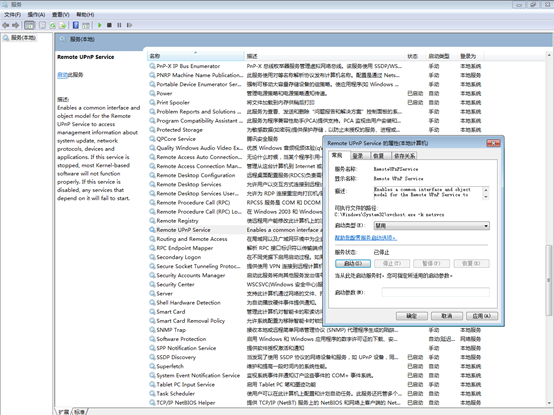 可疑服务项描述:Enables a common interface and object model for the Remote UPnP Service to access